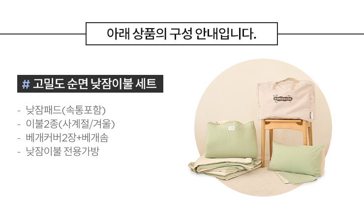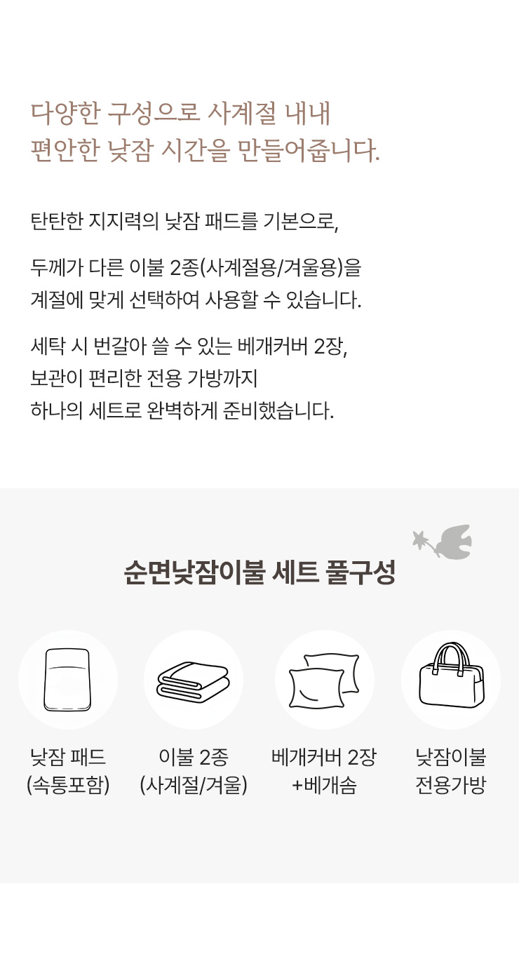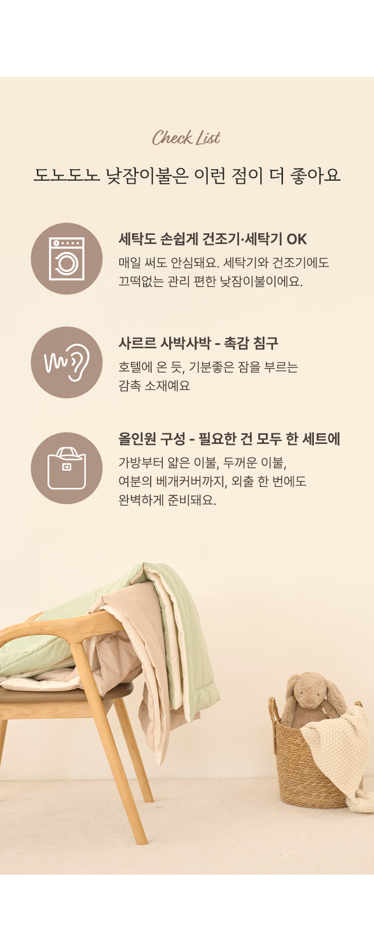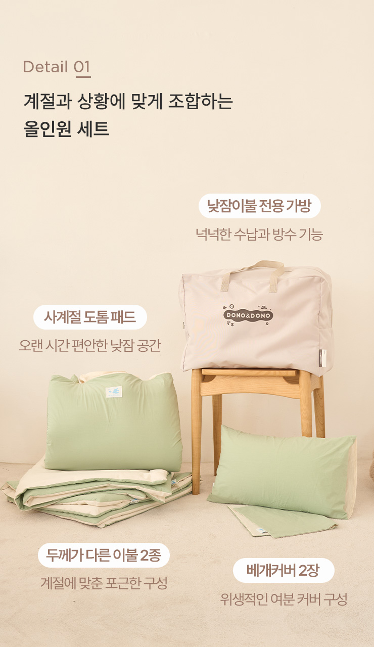 사계절 순면 낮잠이불 올인원 세트(건조기 가능)